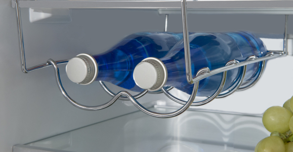 You open the refrigerator... and a glass bottle rolls out and falls to the floor... Not if you have a special bottle shelf! A special fitted shelf keeps your bottles in place, and allows you to make optimal use of the space in the compartment. You can fold and store the shelf, or remove it when not required. No more stuffing bottles in, and dreading opening the door.
