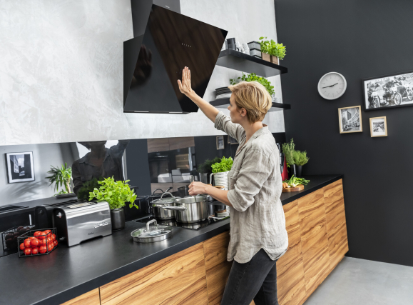 Kdo pravi, da se morate dotikati nape, da bi upravljali z njo? Z dlanjo pred napo naredite določen gib in ta se bo zagnala sama! Ali želite spremeniti moč ventilatorja ali izklopiti osvetlitev? Naredite primeren gib! Z napo Amica upravljate celo brez da bi se jo dotikali. Prav tako ne boste imeli več težav s prstnimi odtisi, kar pomeni manj čiščenja, saj vam nadzorne plošče ni treba več čistiti. Udobno za vsak dan, enostavno kot še nikoli. Dovolj je, da premaknete roko. Ko pa začutite potrebo po klasičnih rešitvah, uporabite standardno upravljanje s senzorji.